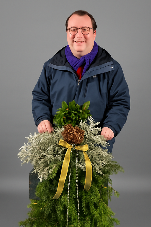 New last year, and we are naming this after our customer, Jesse, who made it last year. Jesse took the most classes in 2025. (Thanks, Jesse!)This lovely angel stands over 2 feet tall. Draped in fragrant greens, adorned with dried everlastings, and glimmering with gilded holly and ornaments, she is a sight to behold.